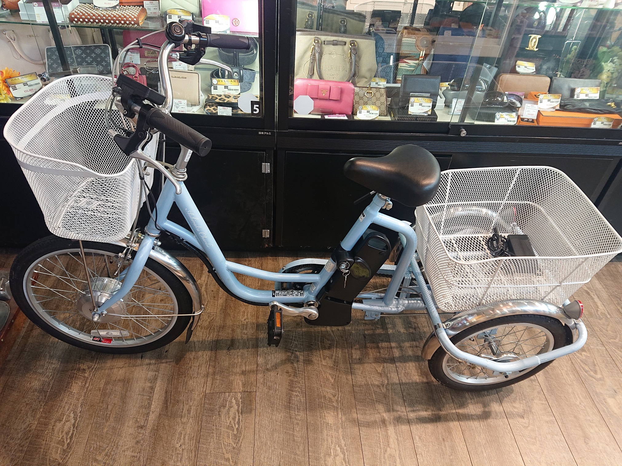 街中でも見かけることが増えてきた三輪自転車は中古需要も高く高価買取させていただいております。