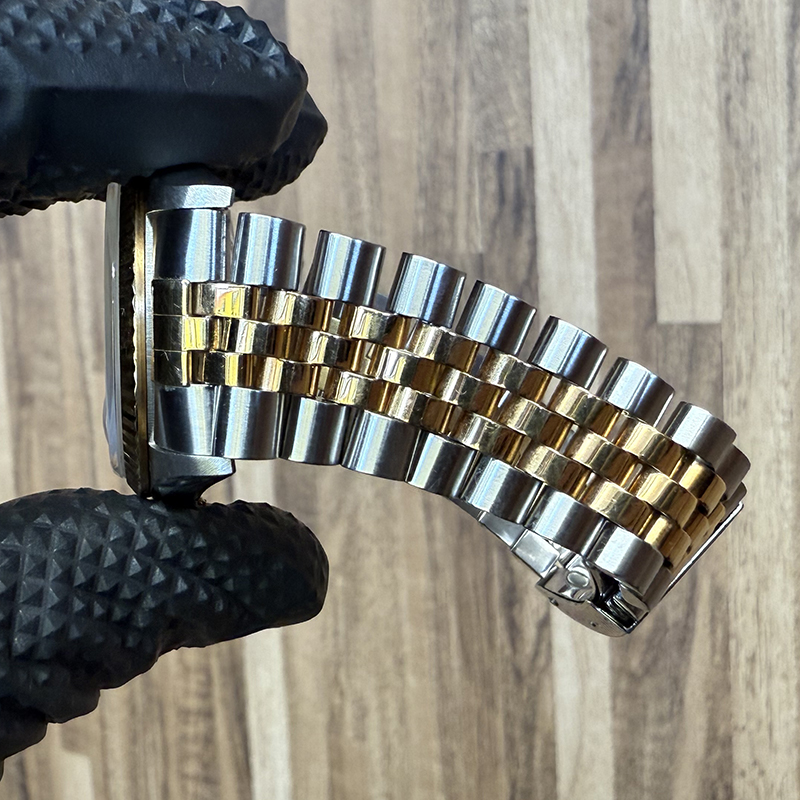 本日、ロレックスの定番人気モデル「デイトジャスト 16233 Y番」をお買取りいたしました。付属品は本体のみでしたが、しっかりと査定させていただき、お客様にもご満足いただける価格で買取させていただきました。