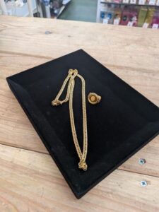 大分市のお客様より金ネックレス/金コイン付きリングをお買取り致しました。